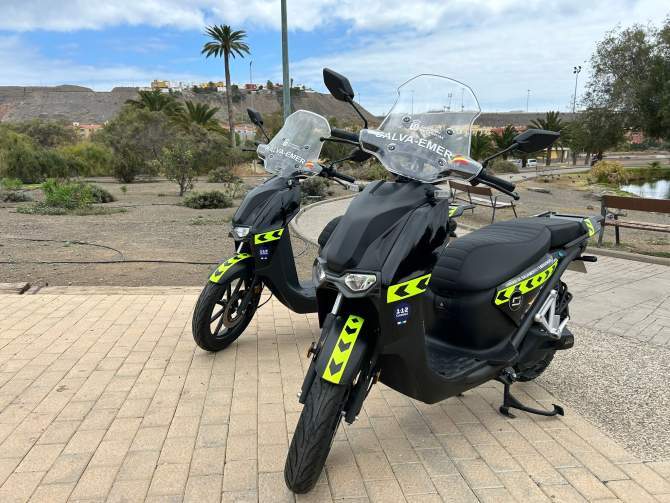 La Unidad de Salvamento y Emergencias (Salva-Emer), con sede en el municipio de Telde, amplía su flota y esta vez lo hace con dos motos eléctricas para el servicio de Acuda SOS. Se trata de un servicio que se dedica a la atención de las personas mayores y víctimas de violencia de género a través del reloj.