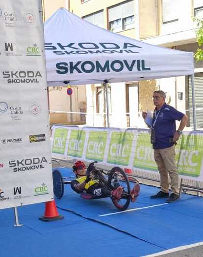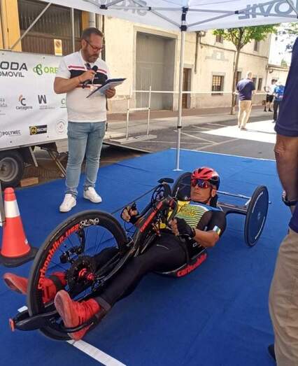 El concejal de Actividad Física y Deportes del Ayuntamiento de Telde, Cristhian Santana Caballero, celebra la actuación del ciclista teldense Antonio Sosa Herrera, del Club Ciclista Canarias 122, que logró la medalla de plata en la categoría MH4 en los Campeonatos de España de Ciclismo Paralímpico en Carretera celebrado en la localidad de Caravaca de la Cruz, Murcia.