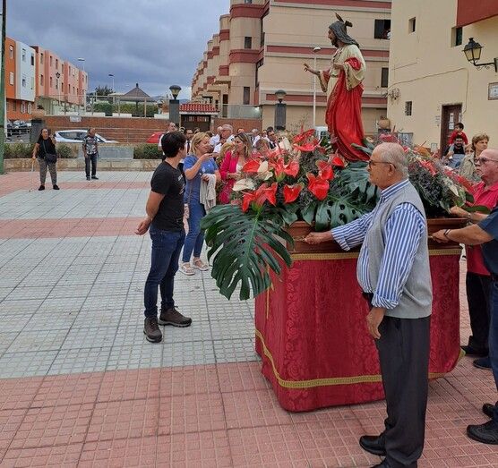 El desfile religioso recorrió las calles de Crisantemo, Amapola, Azahar y Siempreviva, llevando consigo el trono del Sagrado Corazón de Jesús. La procesión estuvo acompañada por la música de la Banda Municipal de Música de Telde, que realzó el ambiente festivo del evento.