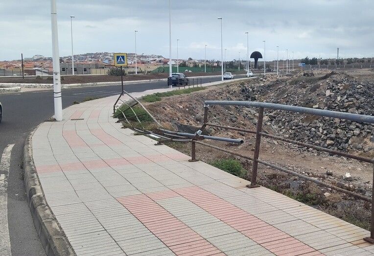 Los conductores que atraviesan el vial costero, que une La Estrella con Melenara, denuncian que hace varios meses un vehículo rompió parte del vallado, metros antes de llegar a la rotonda de El Drago, y desde entonces no se ha arreglado.