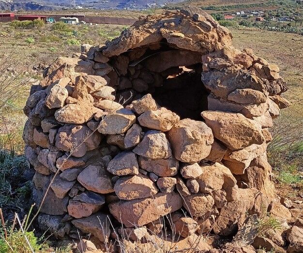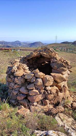 Desciendo por esta ladera y el suelo, ahora en la vertiente de la montaña más próxima al naciente, profundo y esponjoso, está lleno de madrigueras de conejos. Se suceden las entradas a los cubiles de los lagomorfos bajo una cubierta vegetal ocupada ahora en su mayoría por melosas que junto a balos, verodes, cornicales y vinagreras a nivel arbustivo y un manto herbáceo de trebolinas, cubren la tierra de tal modo que sólo es visible en aquellos lugares donde los conejos han excavado sus tobas, algunas verdaderos socavones que airean y aflojan el suelo, volviéndolo más fértil. Es necesario abrirse paso entre tanta vegetación arbustiva. A la dificultad para avanzar se une el placer de comprobar como se recupera la cubierta vegetal de la montaña. Una pequeña vaguada recoge parte de las lluvias de esta ladera. Es, muy cerca de la unión con el barranquillo sin nombre donde aparece la primera casa, muy disimulada, situada junto al camino y entre media docena de pinos canarios bien desarrollados. Cierra el terreno una línea de tuneras y un par de higueras y almendros prosperan en los bancales abandonados.