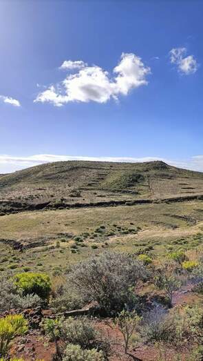¡Qué placer caminar en un cono sin casas en sus laderas, sin vallas, sin torretas en su cúspide, sin mamotretos de cemento con cruces o puntos geodésicos, discurrir sobre un suelo mullido por el manto de herbáceas, embriagado por los aromas de hinojos e inciensos!