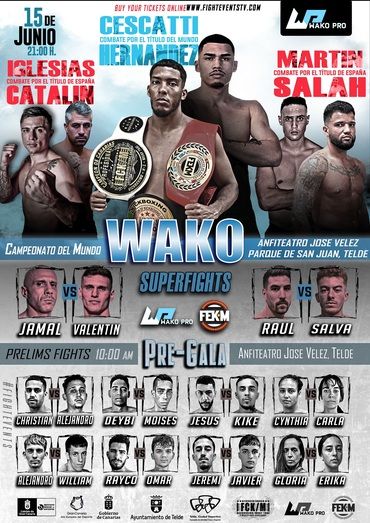 El Ayuntamiento de Telde, a través de la Concejalía de Actividad Física y Deportes, que coordina Cristhian Santana, ultima los preparativos para organizar el Campeonato del Mundo Wako de K1 Profesional, donde el teldense Ayxai Hernández opta al cetro mundial dentro del Festival Deportivo de San Juan, que se celebrará el 14 y 15 de junio en el Auditorio José Vélez, en el parque urbano de San Juan.