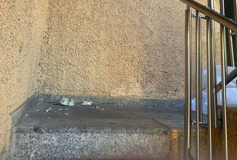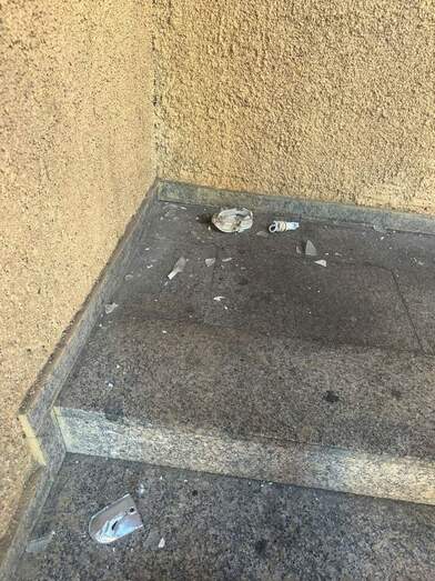 No se inventen, esa escalera se limpian todos los días, ahí se ve que han roto la luminaria y han dejado en el suelo los cristales.