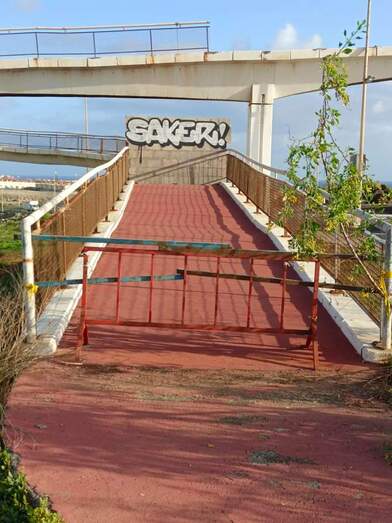 Los residentes en la costa de Telde muestran su preocupación por el mal estado de los puentes peatonales sobre el vial costero, a la altura de Playa del Hombre, que en la actualidad están cerrados por su deterioro y sufren desprendimientos.