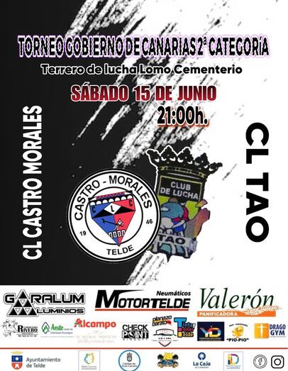 Por la noche, toca el turno de la lucha senior de la Liga regional Disa Gobierno de Canarias, donde el Castro Morales se enfrenta al Tao de Lanzarote. Se trata del último encuentro de la fase regular del torneo, donde esperan la visita de los conejeros a Lomo Cementerio con muchas ganas de conseguir los tres puntos y ofrecer un buen espectáculo a la afición, para despedirse así de una liga regional que esperan repetir el próximo año.