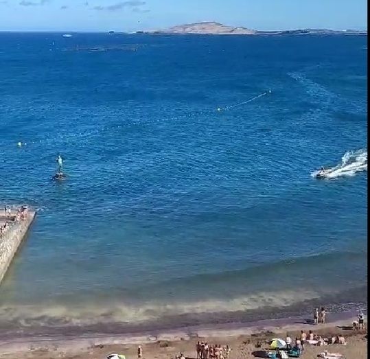 Fotos y videos del avistamiento de un tiburón a escasos metros de la orilla en la playa de Melenara