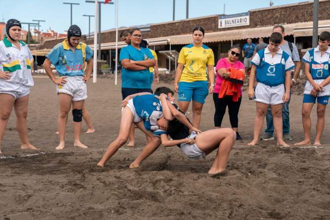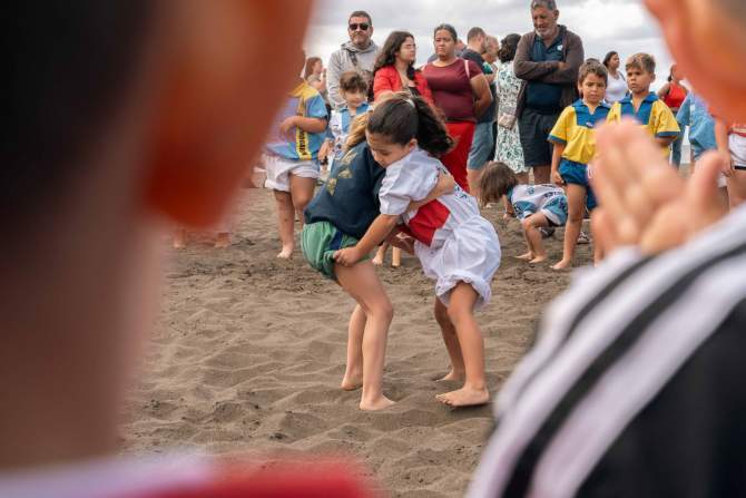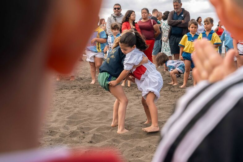 La playa teldense acogió el VI Encuentro Insular de Escuelas de Lucha Canaria, que contó con la participación de unos 350 luchadores pertenecientes a 18 clubes de Gran Canaria, bajo la organización de la Federación Insular de Lucha Canaria de Gran Canaria y la Concejalía de Actividad Física y Deportes del Ayuntamiento de Telde, que coordina Cristhian Santana Caballero, en colaboración con el programa de promoción deportiva de lucha canaria de los Juegos Escolares de Gran Canaria del Instituto Insular de Deportes del Cabildo de Gran Canaria.