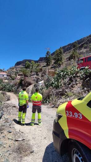 El vehículo quedó en una zona de difícil acceso para los vehículos de emergencias por tierra por lo que se activó el helicóptero del GES para que procediera al rescate de los posibles afectados. A su llegada, los rescatadores confirmaron que el único ocupante del vehículo presentaba lesiones incompatibles con la vida por lo que, con autorización judicial, procedieron a su recuperación y traslado al Aeródromo El Berriel.