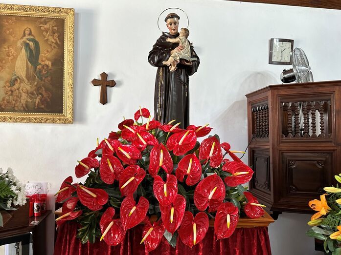 En el Archipiélago Canario se cuentan por decenas, casi un centenar, las imágenes de San Antonio expuesta al culto. En nuestro municipio son popularmente reconocidos los San Antonios; entre otros, el de la Iglesia Parroquial del Santo Cura de Ars y Nuestra Señora del Carmen, en Las Clavellinas, a mitad de camino entre las playas de Melenara y Las Salinetas. Esa Imagen traída de Cataluña fue sacada en procesión por primera vez en este mes de junio, aunque ya llevaba en el templo más de medio siglo. En el barrio de Los Arenales, cuyo territorio de labor compartimos con el cercano y hermano municipio de Valsequillo, lo tienen por Santo Patrono, y a él le dedican unas animadas fiestas en las que no faltan la solemne misa y la concurrida procesión.