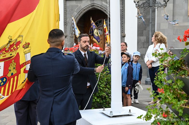 El primer edil fue el encargado de llevar a cabo la acción de izar la bandera, al mismo tiempo que sonaba el himno de España, interpretado por la Banda Municipal de Música de Telde.