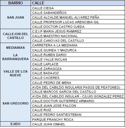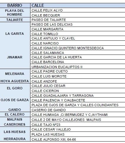 Los barrios donde se actuará son San Juan, Callejón del Castillo, Medianías, La Barranquera, Valle de Los Nueve, San Gregorio, Ejido, Playa del Hombre, Taliarte, La Garita, Jinámar, Melenara, Hoya Aguedita, El Goro, Ojos de Garza, Caserío de Gando, El Calero, Malpaís, Caserones, Las Huesas y La Herradura (ver listado de calles en las imágenes).