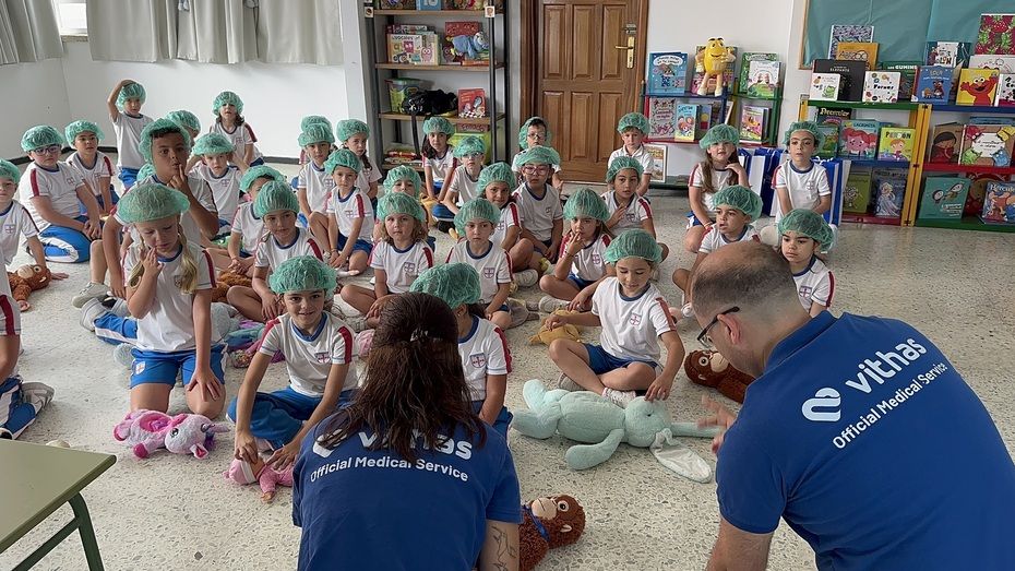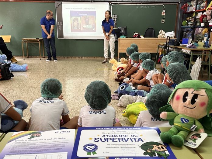 Por ello, con el objetivo de colaborar a la mejora de estos números, el Hospital Vithas Las Palmas ha puesto en marcha un taller de RCP para escolares que ha formado ya a más de 750 niños en los últimos meses. Su última parada en el actual curso escolar ha sido el Colegio Marpe Altavista, en el que se ha impartido a 226 niños de 1º de Infantil, 1º, 2º y 4º de Primaria por parte de los supervisores de enfermería Silvia Marques y Vitor Codeco.