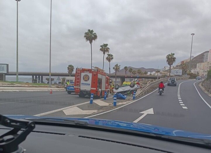 Hace unos momentos, se ha registrado un aparatoso accidente con vuelco de un vehículo en la autovía GC, justo a la salida de la capital grancanaria, en la zona de Hoya de la Plata. El incidente ha generado una rápida respuesta de los servicios de emergencia.