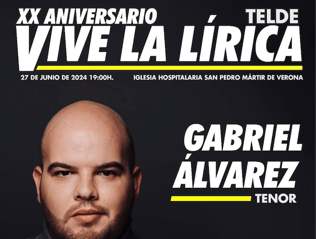 El joven tenor teldense Gabriel Álvarez protagonizará el último concierto del ciclo Vive la lírica, que organiza la Concejalía de Cultura -coordinada por Juan Martel- y la empresa municipal Gestel, antes de la pausa veraniega.
