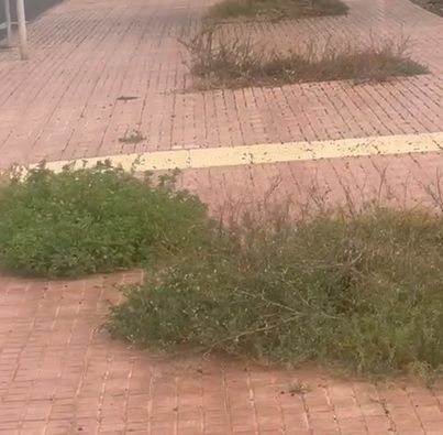 Vecinos de la urbanización de Costa Jardín, en Melenara, denuncian la falta de atención del área de Parques y Jardines, ya que de continuar así, los viandantes tendrán que caminar próximamente por la carretera debido a que las malas hierbas están invandiendo las aceras y crecen sin control.