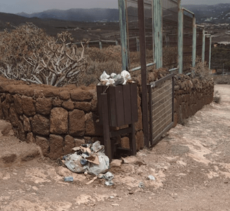 Senderistas de Telde denuncian la imagen de suciedad que presenta el yacimiento arqueológico de Cuatro Puertas. "Según entras, te encuentras la papelera llena y latas y residuos y en el suelo y por el camino. Por lo que se aprecia lleva semanas sin recogerse".