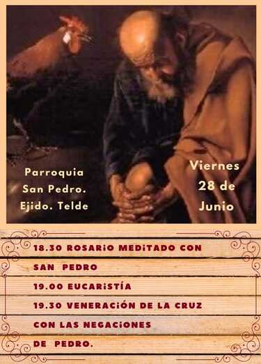 La parroquia de San Pedro, en El Ejido, inicia este viernes los actos religiosos en honor al patrono con un rosario meditado con San Pedro a las 18.30 horas y la Eucaristía a las 19.00 horas.
