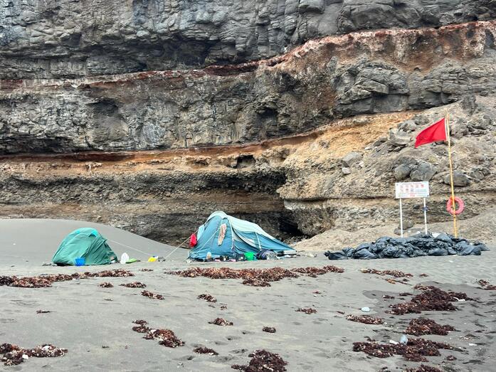 Usuarios de la playa de San Borondón, en el sector de La Garita, alertan de un asentamiento en la cala, con tres personas pernoctando en una tienda de campaña.