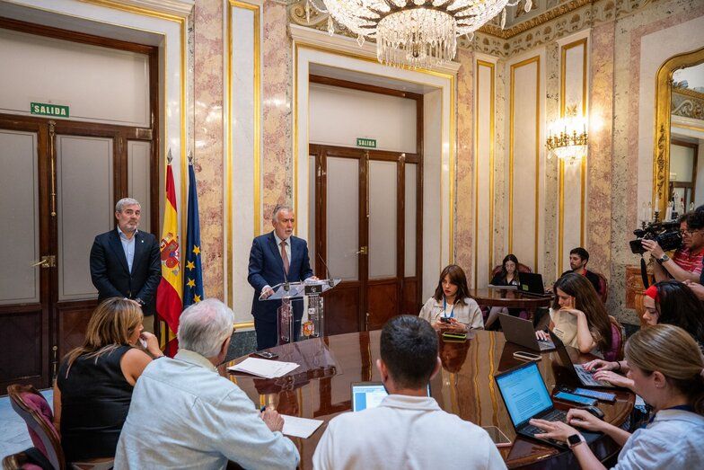 Parece extraño y, sin embargo, debería ser lo más normal del mundo. Ángel Víctor Torres y Fernando Clavijo van de la mano en Madrid para reunirse con los grupos parlamentarios de cara a la reforma de la Ley de Extranjería y el reparto de menores migrantes. Clavijo y Torres, presidente canario y ministro de Sánchez, confluyen y trabajan en equipo. Ciertamente, la fotografía es icónica. Y no deja de ser una exportación isleña, primero, del talante de Torres (que ha sido alcalde de municipio de tamaño mediano, y se nota) y, segundo, del modo canario que luce el lagunero en su acción de gobierno. Dos ingredientes para una misma receta.