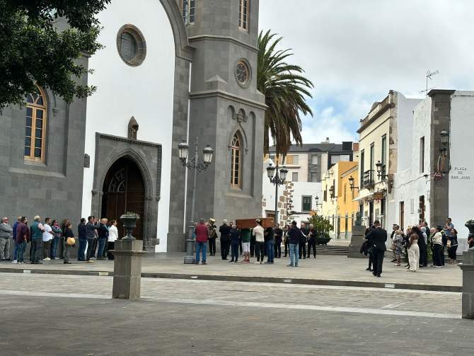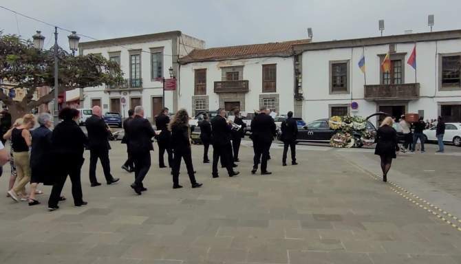 Al finalizar la ceremonia religiosa, la comitiva abandonó el templo bajo los emotivos compases de la marcha fúnebre. Y bajo el saludo de una representación del Ayuntamiento de Telde encabeza por el alcalde Juan Antonio Peña y el concejal de Cultura, Juan Martel.