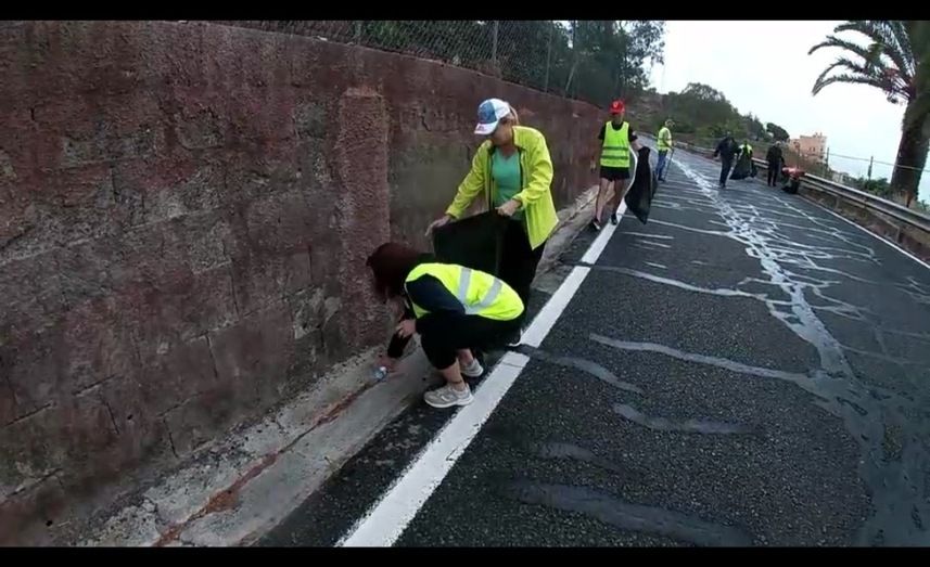 Los vecinos de los barrios de San Roque y La Solana y usuarios de la carretera GC-810, agrupados bajo la plataforma San Roque en lucha, se han movilizado para llevar a cabo una limpieza de la vía.