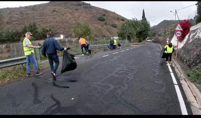 "Cansados de la indiferencia y la absoluta falta de control por parte de la entidad insular sobre la empresa contratada para la limpieza de esta carretera, los vecinos de los barrios de El Cruce, La Solana y Valle de San Roque hemos decidido pasar a la acción y, a pesar del potencial peligro que ello conlleva, en fechas recientes nos hemos reunido un numeroso grupo de vecinos de dichos barrios para formar equipo y efectuar la limpieza de botellas, latas, envases y cartones en los arcenes y cunetas a lo largo de 2 kilómetros, desde el Cruce de Higuera Canaria hasta la zona de La Solana. En total, se han recogido unas 12 bolsas de 120 litros que fueron depositados en los contenedores ubicados a lo largo de la carretera", explican.