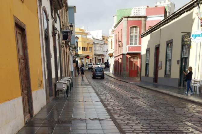 Este lunes, varios cascotes se desprendieron de la cornisa de una antigua vivienda de dos plantas situada en el número 7 de la calle de León y Castillo, en el casco monumental de San Juan de Telde.