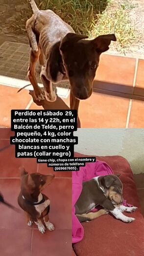 Una familia busca a un perro perdido en la zona de Balcón de Telde. Se trata de un animal pequeño, de 4 kilogramos de peso, color chocolate con manchas blancas en cuello y patas, que lleva un collar de color negro.