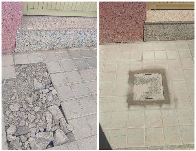 El socavón se encontraba frente a una puerta donde residen personas con movilidad reducida, dificultando seriamente su acceso y seguridad.