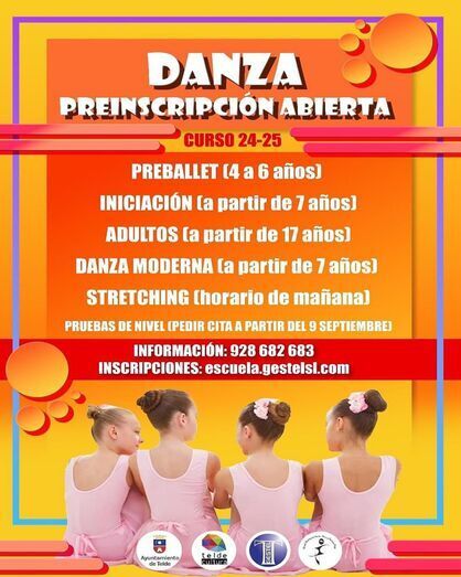La Escuela Municipal de Música, Danza y Teatro de Telde abre el periodo de preinscripción en danza para el curso 2024-2025. Las pruebas de nivel se realizarán a partir de septiembre, con cita previa.