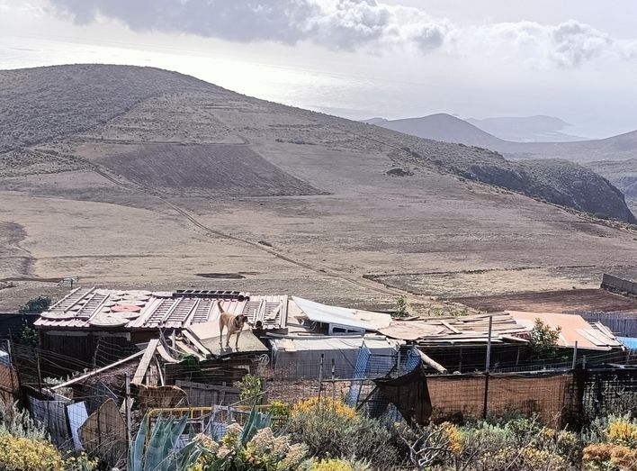 Escucho ladridos y sé que varios de ellos obedecen a la presencia de una casa en la cara oeste de esta montaña, casa que sirve de puesto de vigilancia sobre la montaña de Santidad. Han sido siempre los que han dado la alerta ante intrusos, tanto aquellos que han intentado llevarse un puño de picón -más o menos grande-, como los incómodos e indeseables personajes para ellos: periodistas, ecologistas, defensores de los valores etnográficos, de los volcanes, de la fauna y de la flora que tras su paso, procedían a denunciar los desaguisados cometidos, las tropelías de nuevas catas no autorizadas y con ello abogar por la paralización definitiva de las extracciones.