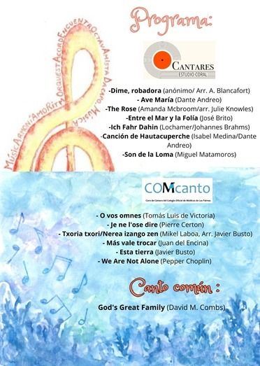 Está organizado por el coro femenino Cantares de Telde, que dirige Vanesa González, y por el coro del Colegio Oficial de Médicos de Las Palmas, Comcanto. Ambas agrupaciones interpretarán un variado repertorio, con obras de diferentes países y momentos históricos.