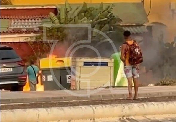Al menos un recipiente de plástico destinado a la recogida de residuos orgánicos ha ardido hace unos minutos en el punto de contenedores situado junto a las antiguas instalaciones escolares de Melenara y la rotonda conocida popularmente como del barco.