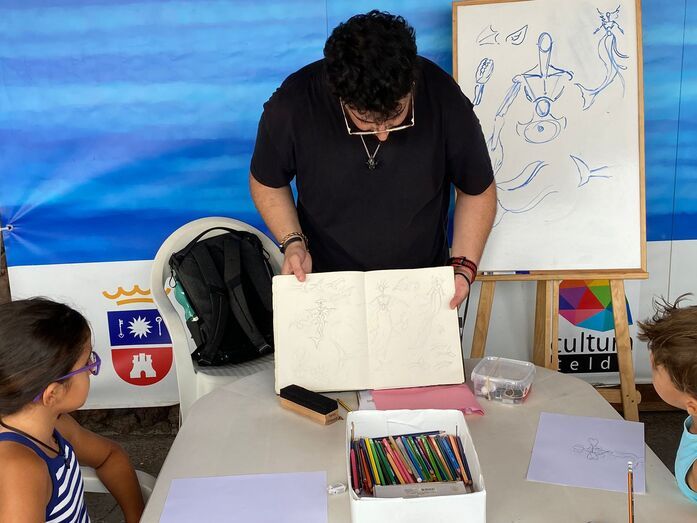 Las actividades de la Biblioplaya, instalada en el paseo de Melenara, continúan cosechando un gran éxito entre las familias de la ciudad y visitantes de otros puntos de la Isla. Este viernes, a partir de las 18.30 horas, el artista Javi Afonso impartió un taller de ilustración titulado "Sirenas de la fauna marina canaria", dirigido a los más pequeños.