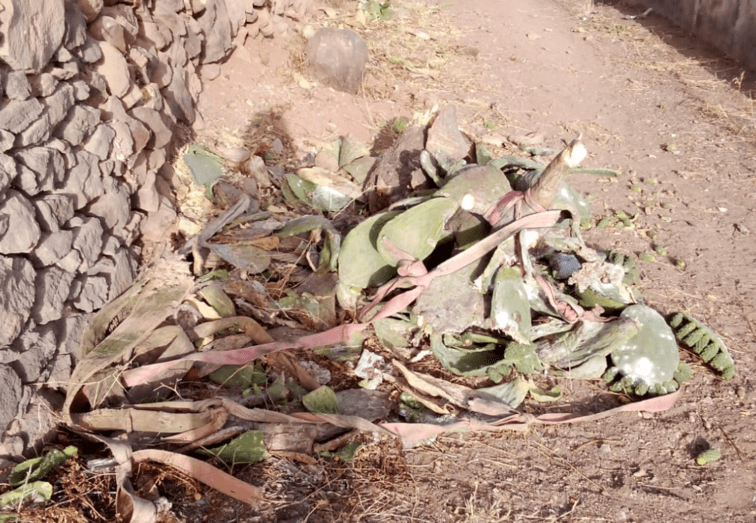 Quejas por unos rastrojos de tuneras y pitas que han aparecido en la carretera de Vista Alegre, un camino que va en dirección a La Barrera. Denuncian que los dueños de las fincas colindantes se dedican a limpiar sus terrenos y luego depositan esa basura en zonas comunitarias.