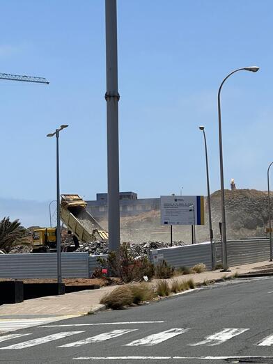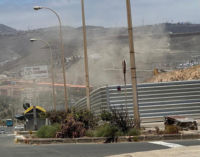 La situación se vuelve insoportable para los vecinos de Tablero del Conde (Valle de Jinámar) debido al polvo asfixiante que levanta el desmonte de la loma, realizado para la construcción del edificio de Servicios Esenciales por el Gobierno de Canarias.