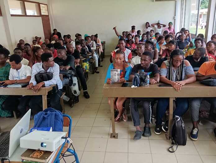 El libro ‘Madres’ continúa traspasado fronteras y en esta ocasión ha llegado al continente africano. Estudiantes universitarios de español de la Universidad Félix Houphouet-Boigny de Costa de Marfil leen en el aula este trabajo impulsado por el escritor afincado en Telde, Juan Carlos de Sancho.
