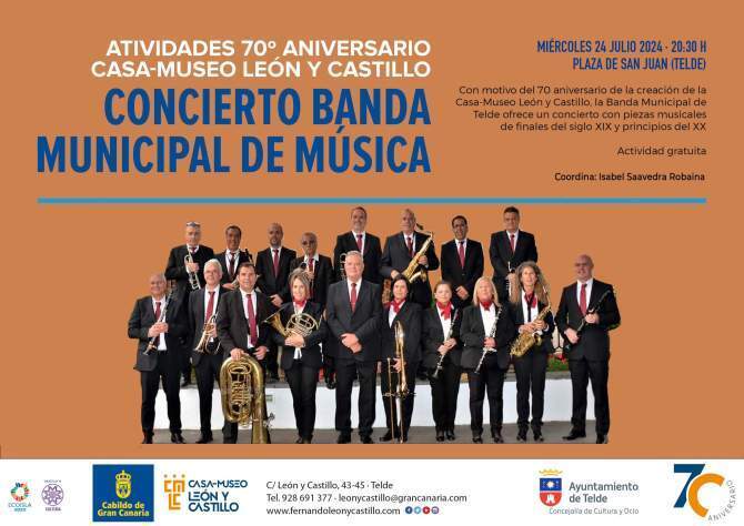 Telde celebró esta tarde-noche el 70º aniversario de la Casa-Museo León y Castillo con un evento muy especial. La Banda Municipal de Telde deleitó a los asistentes con un concierto único, interpretando piezas musicales de finales del siglo XIX y principios del XX, en la emblemática plaza de San Juan.