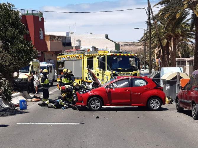 En el lugar del accidente hicieron acto de presencia bomberos del parque zonal de La Garita (Telde) y dos ambulancias del Servicio Canario de Salud, una medicalizada y otra de soporte vital básico.