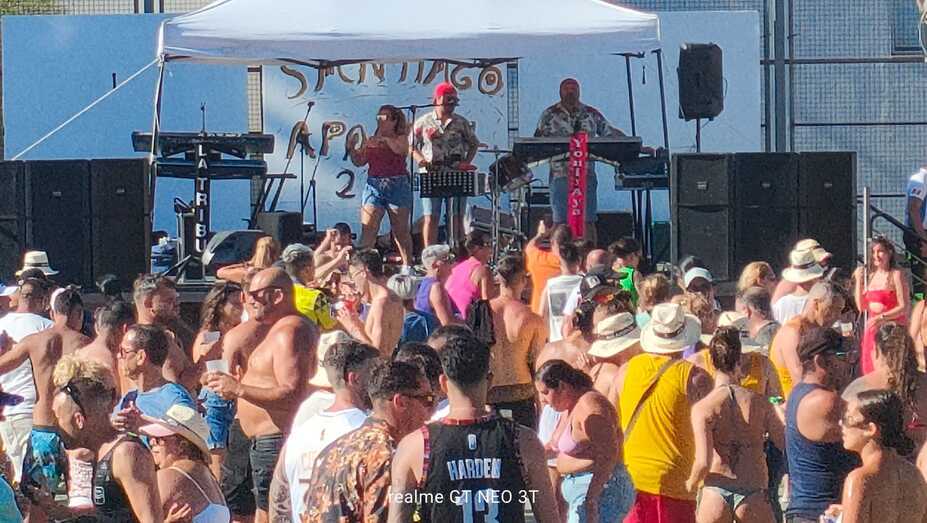 A continuación, tuvo lugar la gran fiesta del ya tradicional Chapuzón en la cancha deportiva, un evento que estuvo amenizado por los grupos musicales Yoni y Aya y La Tribu, quienes lograron mantener la energía y el entusiasmo de los asistentes durante toda la celebración.
