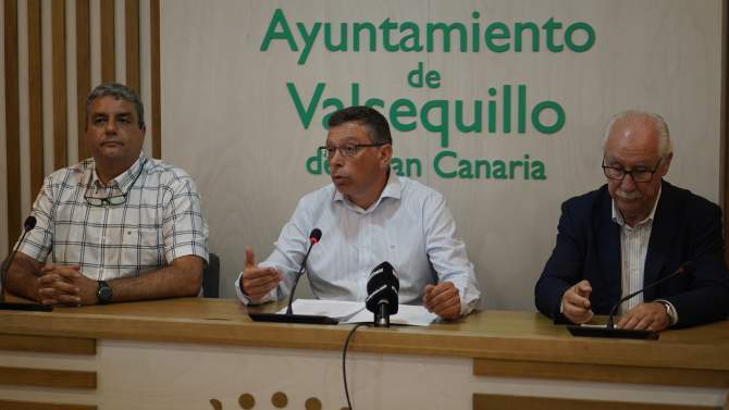 El consejero de Sector Primario, Soberanía Alimentaria y Seguridad Hídrica del Cabildo de Gran Canaria, Miguel Hidalgo, junto al alcalde del Ayuntamiento de Valsequillo, Francisco Atta, presentaron este lunes una estrategia hídrica en la que se incluyen las acciones que se están llevando a cabo en el municipio de forma conjunta para garantizar el agua para el sector primario en la localidad.