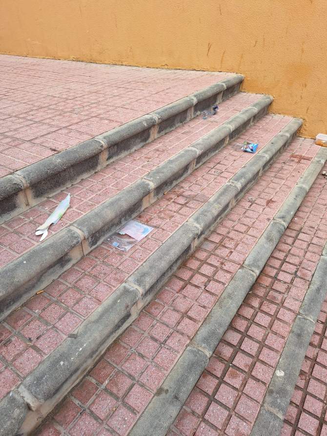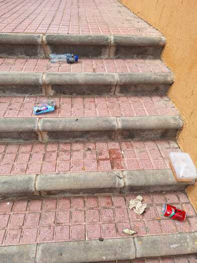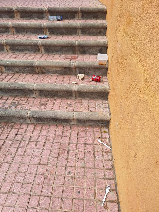 Los residentes locales señalan la urgencia de instalar una papelera en la escalera para evitar que las personas incívicas dejen sus residuos allí en lugar de cruzar la acera para usar los contenedores disponibles.