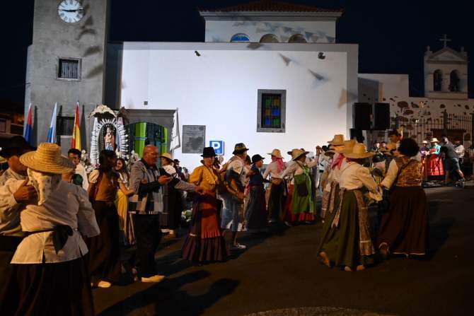 Diversos grupos folclóricos y parrandas también se unieron al evento, entre ellos A.F Las Goteras, C.B Erasmo Hernández, A.F Roque Azucarero, A.F. Tajea y Torna, A.F. Abora e Ilusión de la Esperanza y la Parranda Lomo Magullo. La música y los bailes tradicionales llenaron el aire de alegría y camaradería, mientras los vecinos y visitantes disfrutaban de esta manifestación cultural y religiosa.