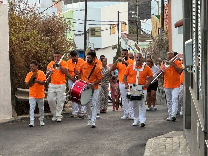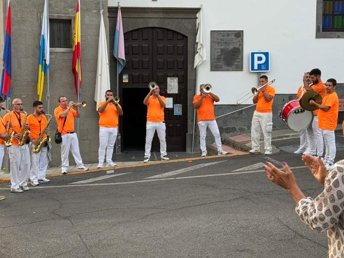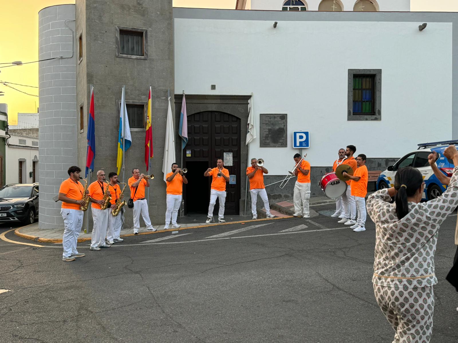 La jornada comenzó con la animada diana floreada de la Banda Isleña, que despertó a los vecinos con un recorrido por las principales calles del barrio teldense.