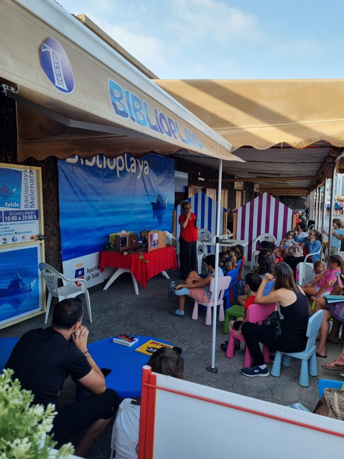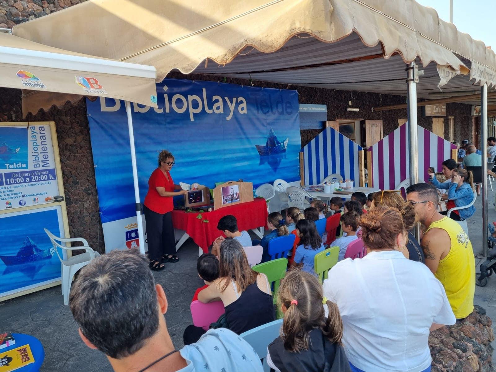 La Biblioplaya celebró este viernes pasado 2 de agosto, a las 18.30 horas, un taller de kamishibai en el espacio habilitado para el proyecto veraniego en el paseo de Melenara.