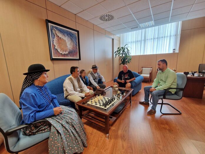 En la mañana de este martes, el alcalde de Telde, Juan Antonio Peña, ha recibido en las instalaciones del Ayuntamiento, en El Cubillo, a miembros de las agrupaciones culturales que representarán a la ciudad en la romería de Teror. Ellas son la Asociación Folclórica Arnao y el Cuerpo de Baile Erasmo Hernández, dos conjuntos locales con gran experiencia en fiestas tradicionales canarias, que acompañarán este año a la carreta municipal.