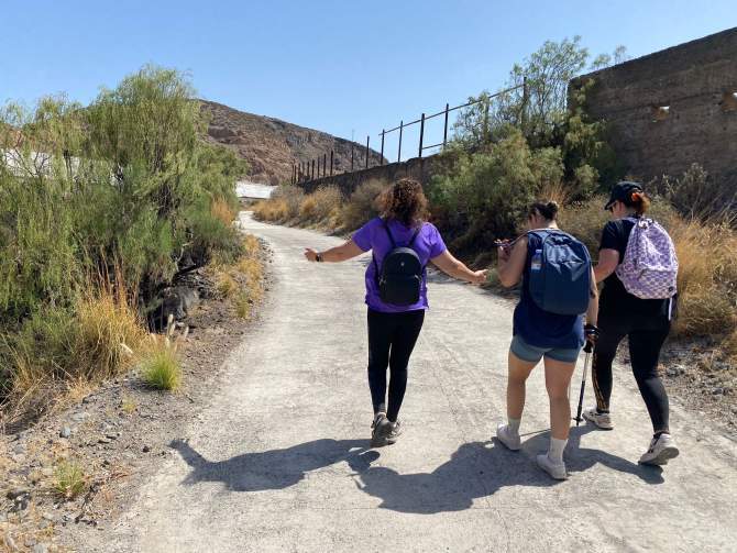 La visita comenzó en la escultura “Abrazando la vida”, del artista Francisco Celis, inaugurada en julio del 2022, para conmemorar el 50 aniversario de la Traída del Agua del Lomo Magullo. Tras descender por el Camino de Peniche, realizaron un total de 12,5 kilómetros de recorrido hasta llegar al centro comercial de Las Terrazas de Jinámar.