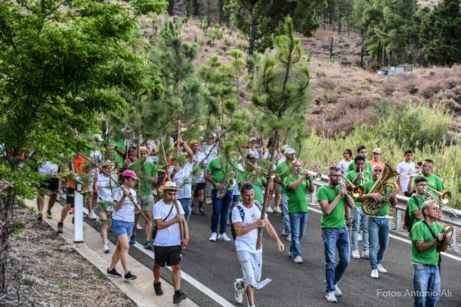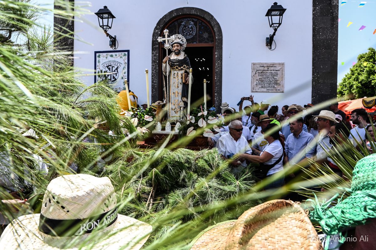 El acto se inició a las 8.00 horas desde la zona de los Garajes y discurrió por El Tablado, Los Morretes y Las Cruces, donde se hizo una breve parada antes de continuar al casco. Allí esperaba la imagen del santo y, tras las tres vueltas de rigor, se postraron las ramas a sus pies, cumpliendo con esta promesa y tradición un año más, llenos de sentimiento y emoción.