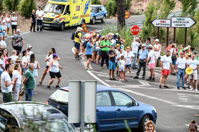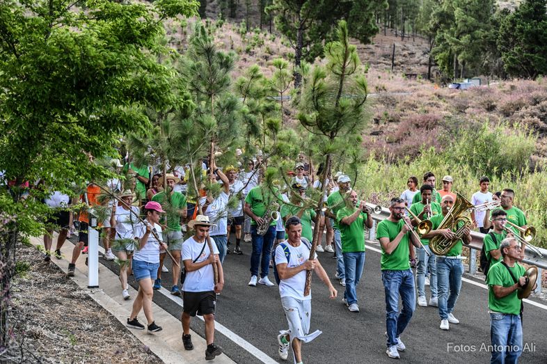Los numerosos juncalillenses , junto a las familias y los amigos que participaron en la bajada de la rama , acompañados con papagüevos y enormes ramas del pinar que fueron fielmente portadas por cientos de romeros para ofrecerlas ante la imagen del santo patrón y lo hicieron bajo una fuerte ola de calor, que aun así no les quitó las gana de bajar cantando y bailando hasta llegar a la plaza de Juncalillo.